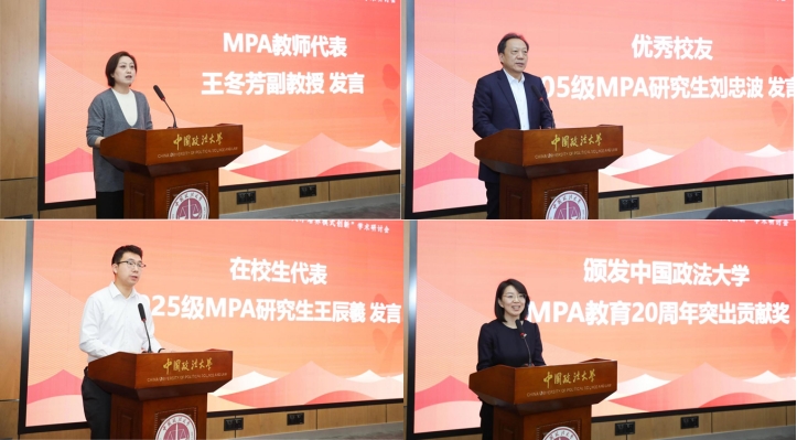 MPA教师代表王冬芳副教授,院友代表2005级MPA研究生、山东省枣庄市能源局党组书记、局长刘忠波,在校生代表2025级MPA研究生、商务部配额许可证事务局干部王辰羲先后发言,分别分享了从教心得与学习体会。